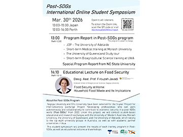In this project, we actively push forward with international joint research in Australia - a country known for its multi-ethnic and multicultural society. We implement bilateral research and education exchange programs, through which students from diverse cultural and academic backgrounds can proactively engage in collaborative learning, with our partner universities (the University of Adelaide, the University of Western Australia, Monash University, and the University of Queensland) which conduct world-class academic research. The project aims to develop professionals who can work autonomously and collaboratively to contribute to economic security in the Asia-Pacific region in a post-SDGs world.